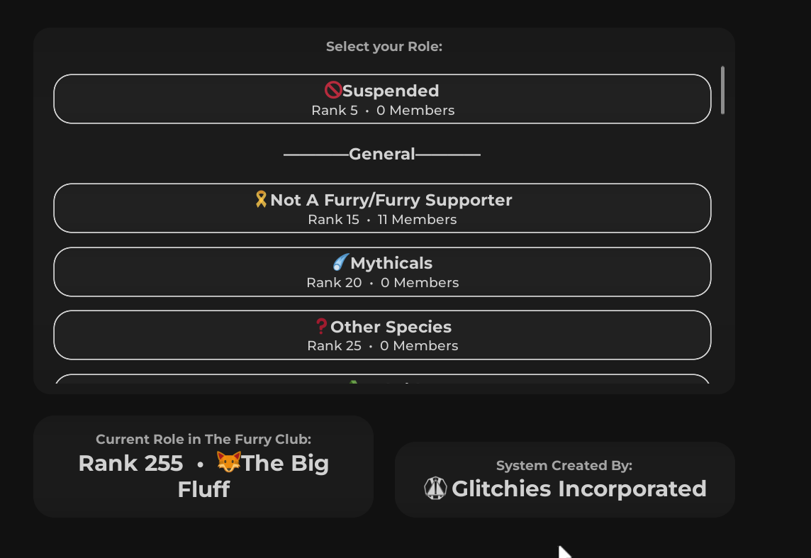 Rank Place lets communities who are enrolled offer an automatic system to rank their members in groups. This can vary useful for communities like furry groups with many roles for various species, instead of thinning moderation you use the rank place to handle ranking automatically.
