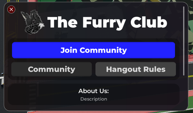 The Furry Township is a Furry Social Hangout game where you can heavily customize your custom profile, spawn cars and drive around, and claim buildings to heavily customize and sell your items.